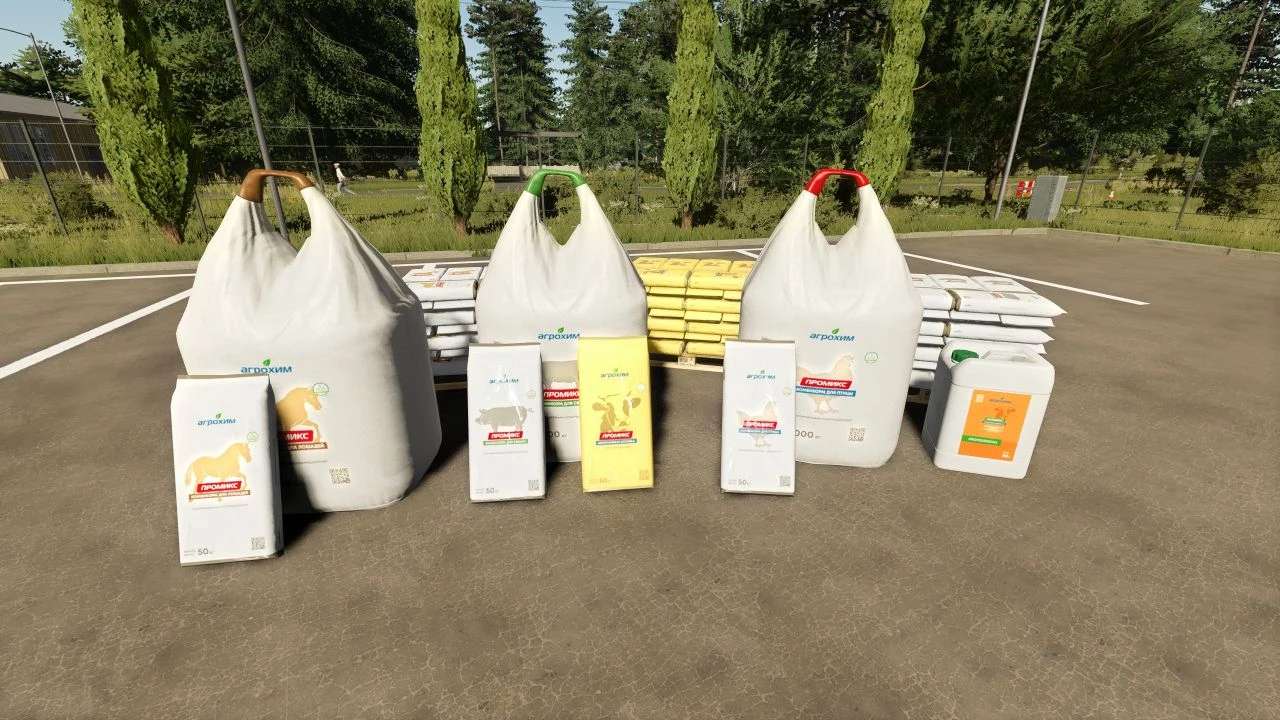 The pack includes: liquid and granular fertilizers, herbicides, seeds, animal feed, silage additive, lime.