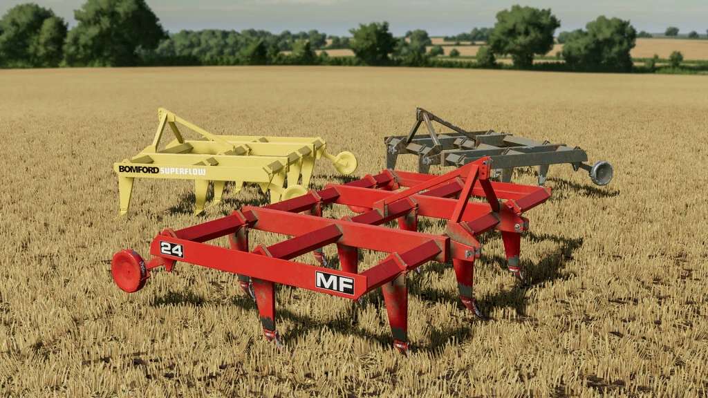 Bomford Superflow Chisel Plough, built in the UK by Bomford and sold by Massey Ferguson as the model 24 chisel plough.