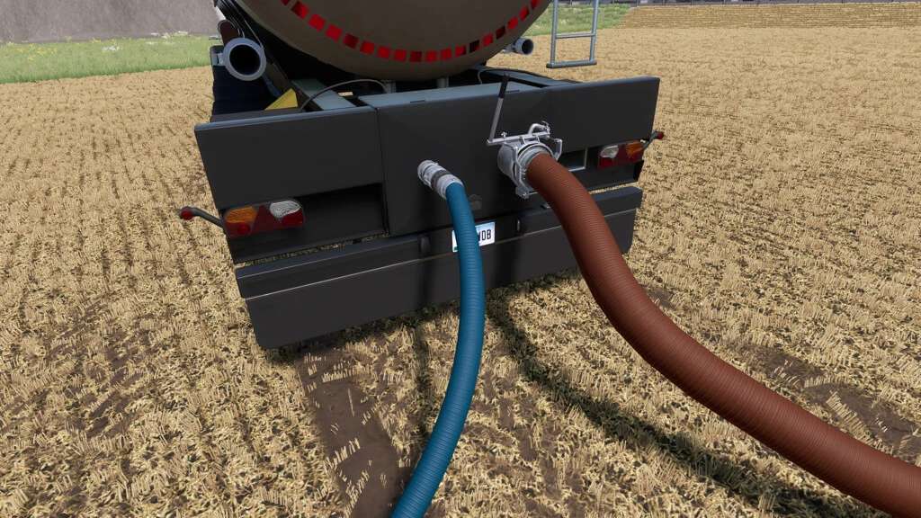 Hose transport: Connections for both hoses have been installed. A slurry hose can be attached on the left and a fertiliser hose on the right for transport.