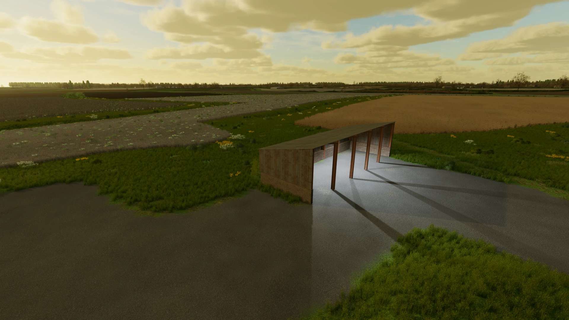 Here we have some open lean-to type sheds for Farming Simulator 22. Unfortunately GIANTS have a problem with me not using their shitty colour selection functionality and creating a bunch of different i3ds and variants in the shop. I’m not going to go down the route they want for modhub, so they’ll have to release here. These are a required mod for Fen Edge.
