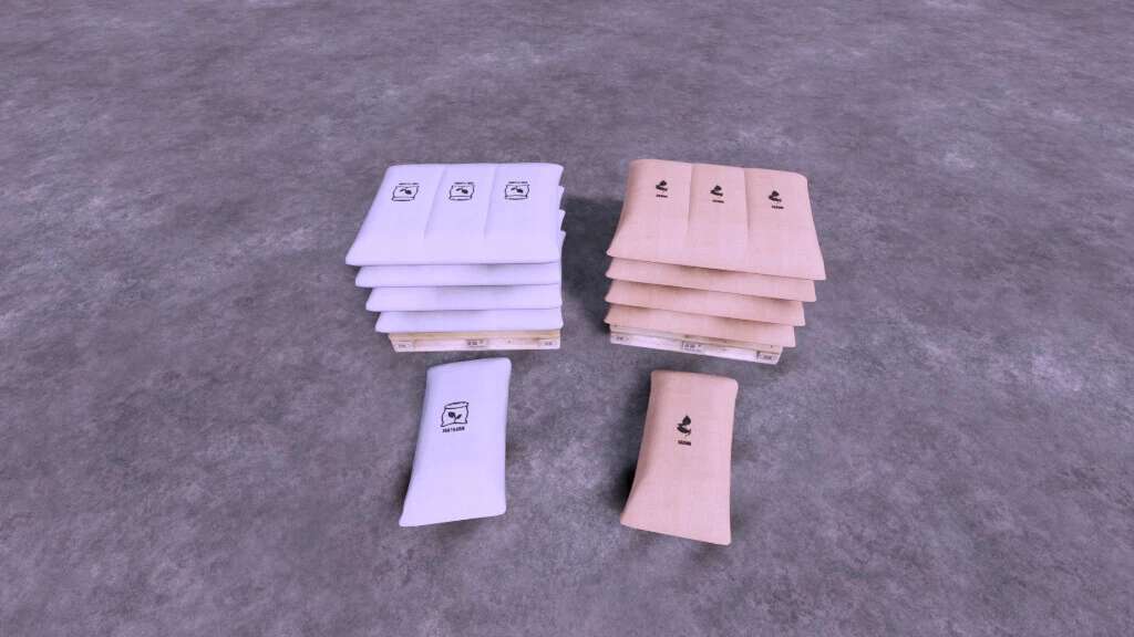 Two kinds of bags of seeds and fertilizers, individual bag or pallet with 12 bags.