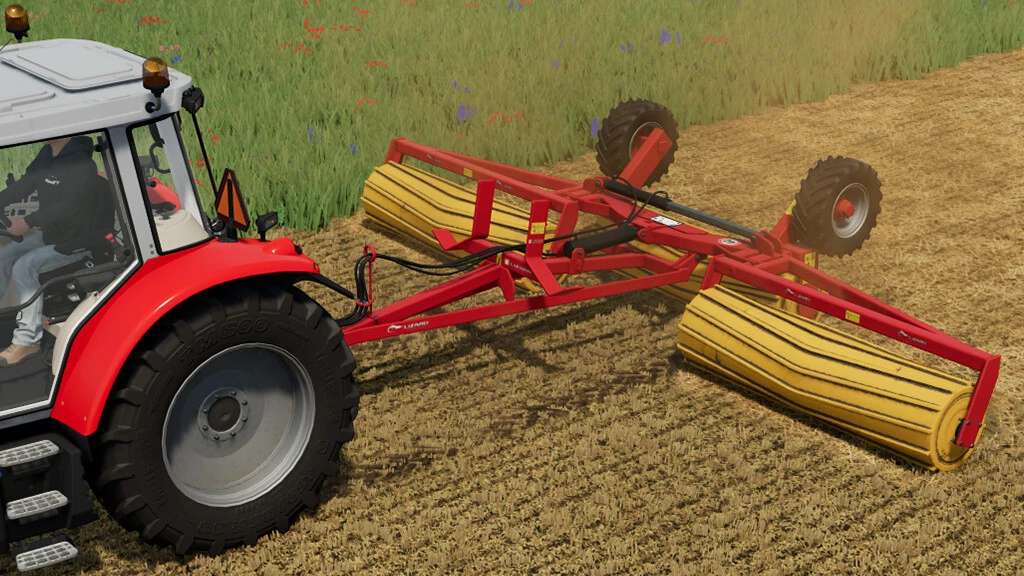 Trailed roller with a working width of 6 metres with three oscillating sections on a folding trolley. Can be used as a cultivator or mulcher.