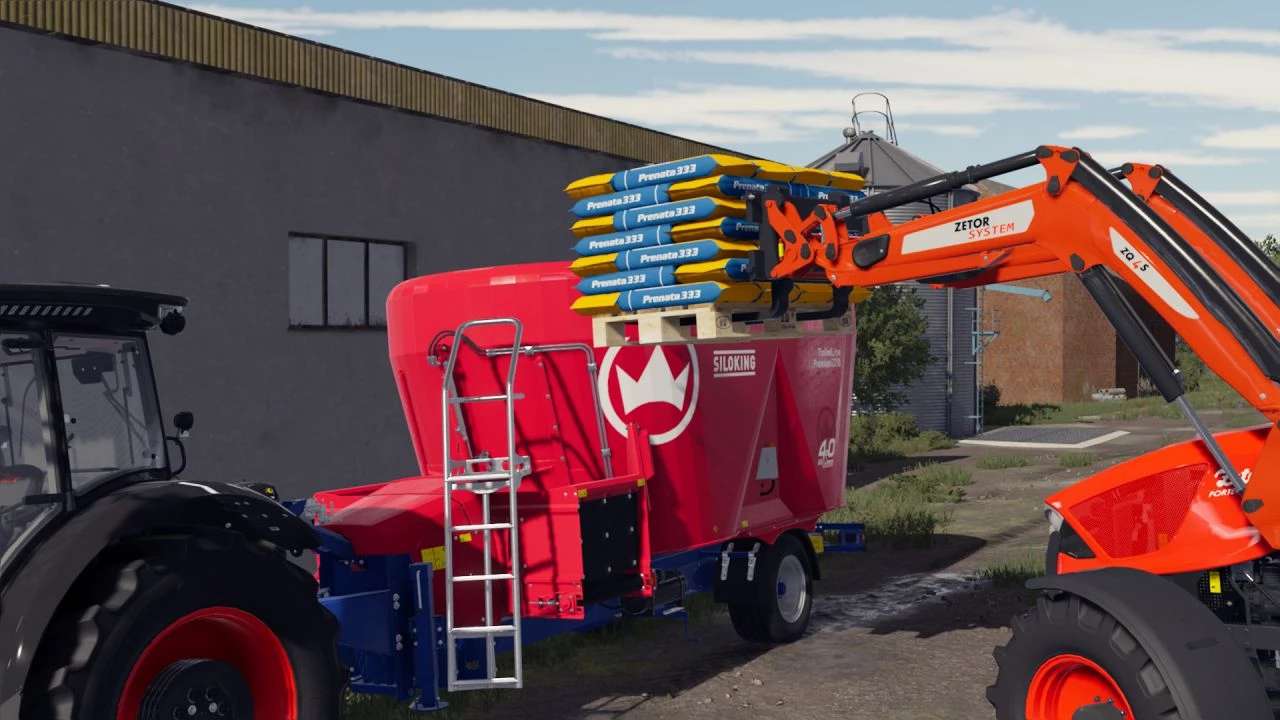 A pallets and bags of Polish brand SANO forage.