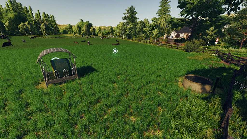 This pack contains two simple cow pastures, which can be expanded using the “Expandable Pastures” mod. One pasture has an old barrel with a drinking trough, which the animals use to get water. This barrel must be refilled regularly. The second pasture has a swivel pump, which allows the groundwater to be used as a water supply. This means that it is not necessary to fill the drinking trough.