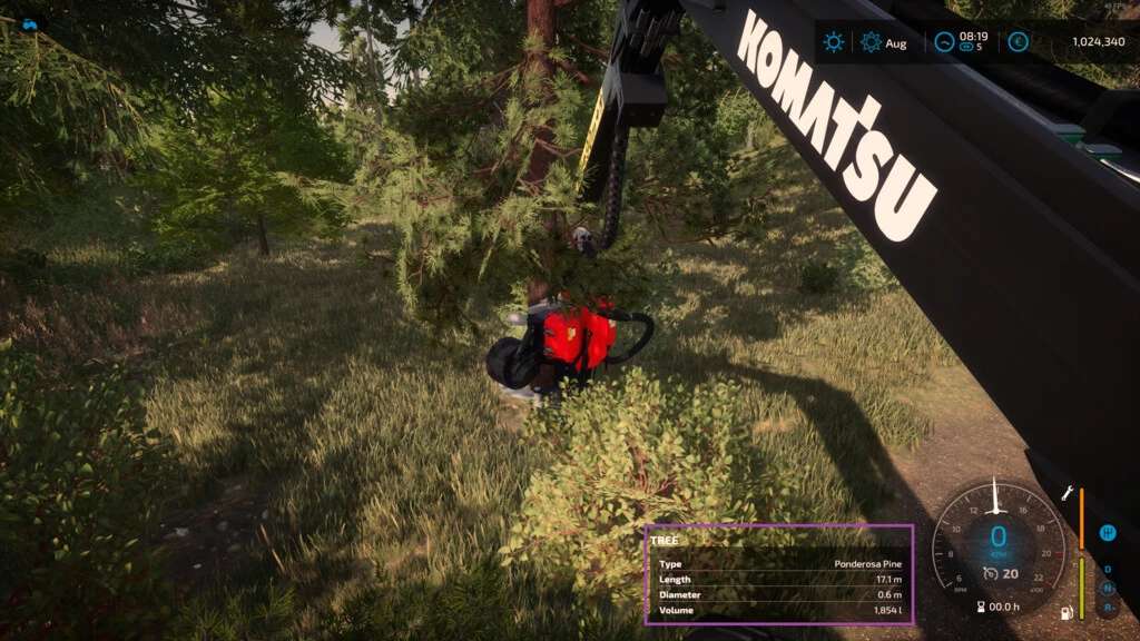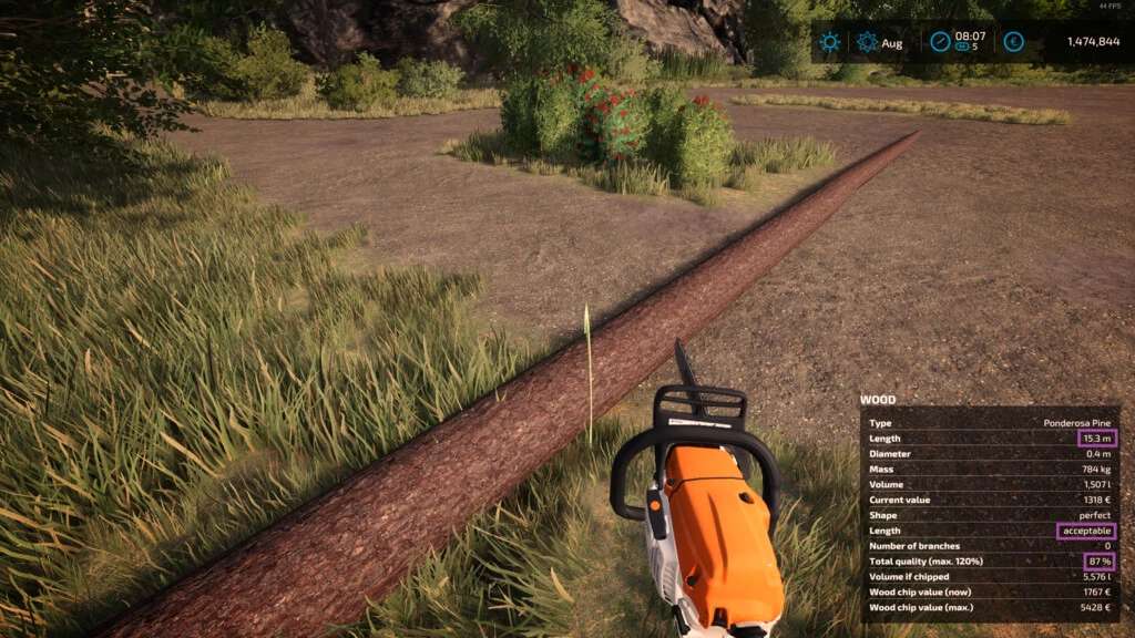 – The volume of the piece of wood in liters. This is also being displayed before felling.