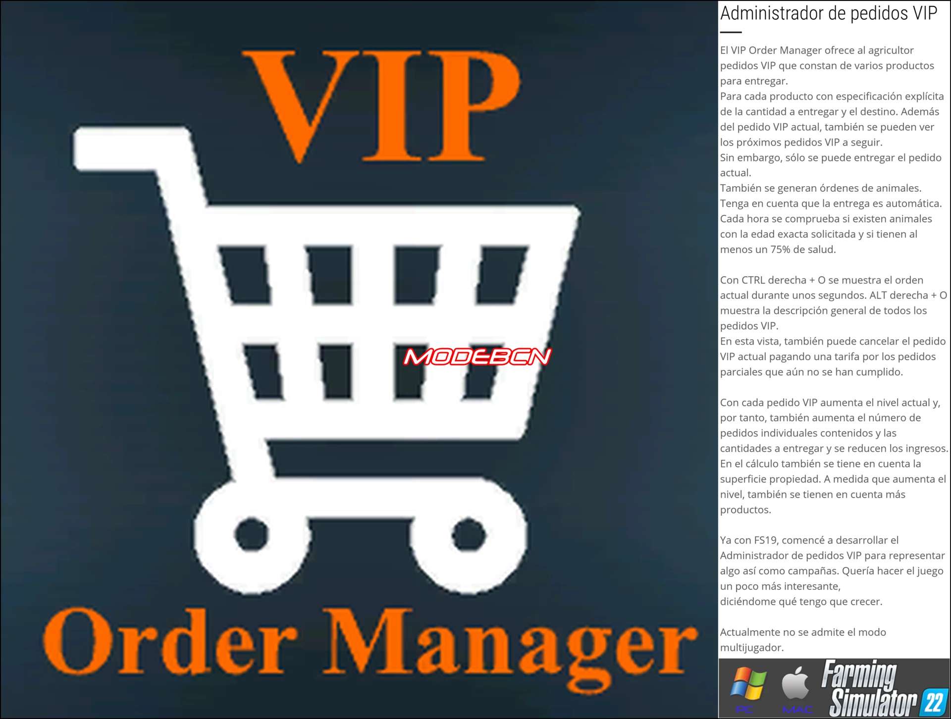 VIP Order Manager ESPANOL V1.3.3 FS22