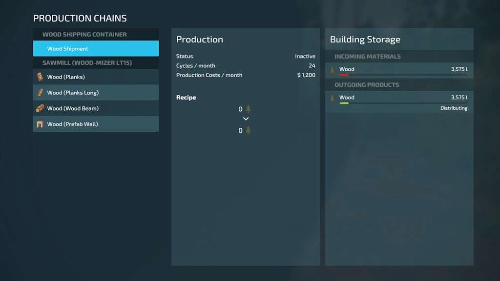 Distribute your wood to production sites effortlessly or ship it to sell points with ease by switching between “Distribution or Selling” under the production management tab.